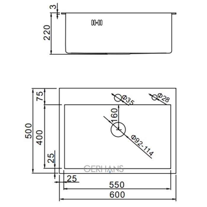 Мойка из нерж.стали Gerhans K36050 600*500*220 мм Cталь