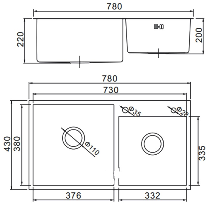Мойка из нерж.стали Gerhans K37843-S 2 чаши 780*430*220 мм Сталь